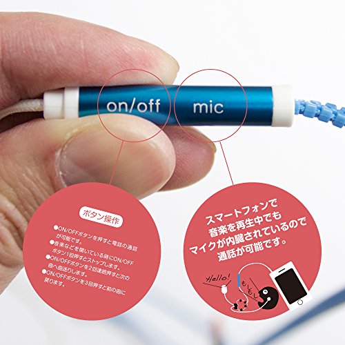 Zip phone 곰 ##지 않겠 지퍼형 이어폰 커널형 패스너에 의해 선이 얽히기 어렵다 통화 마이크 부착 (블루)