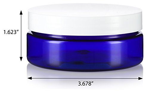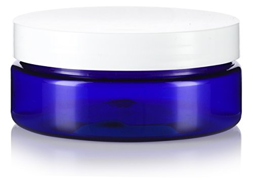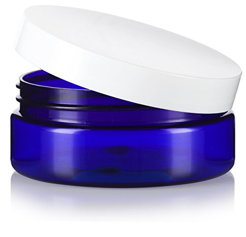 4 oz / 120 ml Cobalt Blue PET Plastic (BPA Free) Extra Low Profile Refillable Jar with White Lid (12 PACK) + Spatulas and Labels