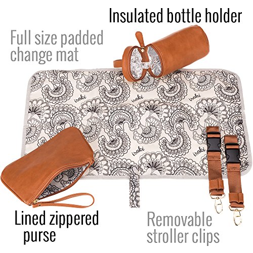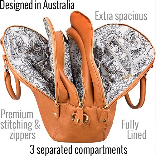 • Stylish, multi-pocketed, nappy bag • Three very generous separate compartments perfect for easy organisation • Several large secure pockets including an easy access front pocket with zipper • Removable storage bag, perfect for holding nappies, wipes and creams for those quick trips out and about • Removable, insulated bottle and snack bag • Large, easy wipe, padded change mat • Adjustable shoulder strap