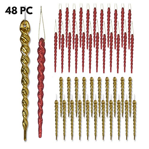 Red and Gold Decorations - Set of 48 Red and Gold Glitter Icicles - Includes 24 Shiny Gold Icicles and 24 Red Glitter Icicles - Shatterproof Icicle Ornaments