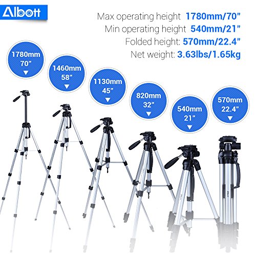 3.63 lbs Net weight; 8.8 lbs Load Capacity; 4-Section Tripod 21"-70" Height Range; Adjustable Center Column Converts to 5-Section Monopod 18"-65" Height Range