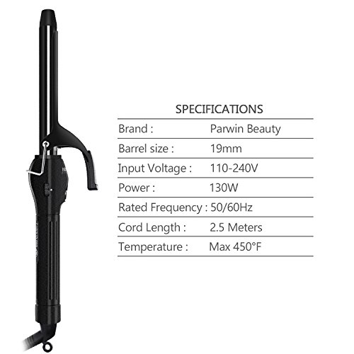 Kindly Suggestion: Using the attached heat-resistant glove to ensure your safety.Information Parwin Beauty 19mm Curling Iron makes your hair charming curls!