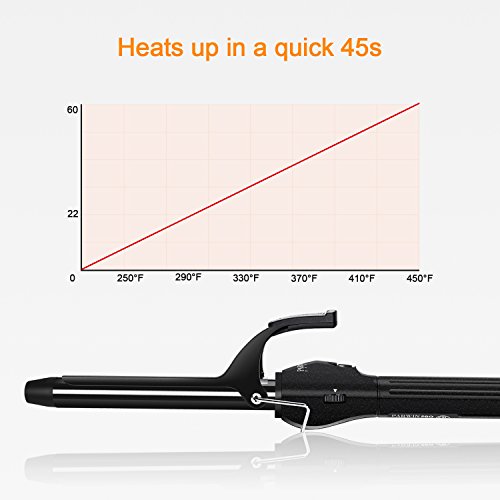 The ceramic tourmaline barrel generates constant and even heat to create long-lasting, shiny curls with maximum 450°F.