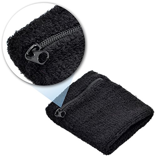 Techion Sports Sweatband Set Including 1 Pack Headband and 2 Pack Wristbands with Zipper Pocket / Wallet for Cycling, Running, Tennis and more