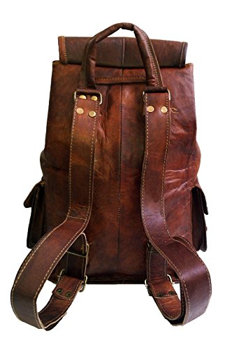 -. Feature : Handcrafted exports provide great quality of bags and features. Many size many varieties that too made by professional and experienced artisans. Treated by natural ingredients. Brass accessories/fittings used for making. / Outer Material: Leather, Inner Material: Canvas; Color: Brown; Number of Compartments: 4; Closure Type: Buckle; Strap Type: Adjustable / Volume: 10 Liters; Product Dimensions in Inches (L x W x H): 16 x 5 x 12 / The knapsack has a handle on top, adjustable nice wide back straps, has an inner stitched canvas for durability / This leather backpack can fit up to 15 inch laptops easily, very functional as a daypack. The knapsack has a handle on top, adjustable nice wide back straps, has an inner stitched canvas for durability