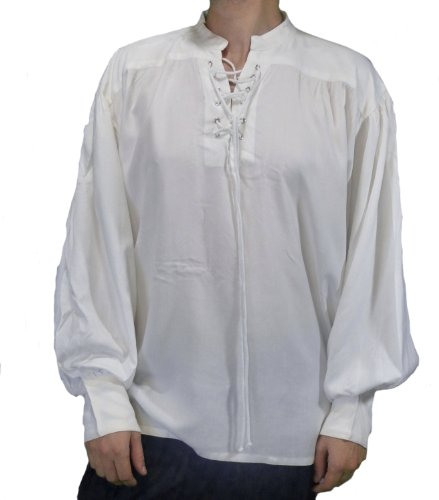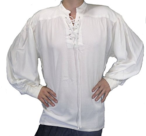 -. Brand : The Pirate Dressing -. Color : White -. Department : mens -. Feature : Includes one pirate Shirt, color white / Chest sizes 40-50" Please see details for specific measurements / This product is made from fine rayon cotton blend fabric / Shirt has a special sleeve design; with the sleeves resting on the wrist and creating a fluffy flowing look near the cuff / The 5-button cuff tightens up the borderline, drawstring and eyelets in front -. Model : PDC1099P -. ProductGroup : Apparel -. ProductTypeName : ADULT_COSTUME -. Title : Captain Quincy Pirate Shirt , White, Small - XXX-Large - Chest 40-50"