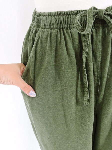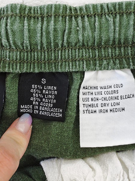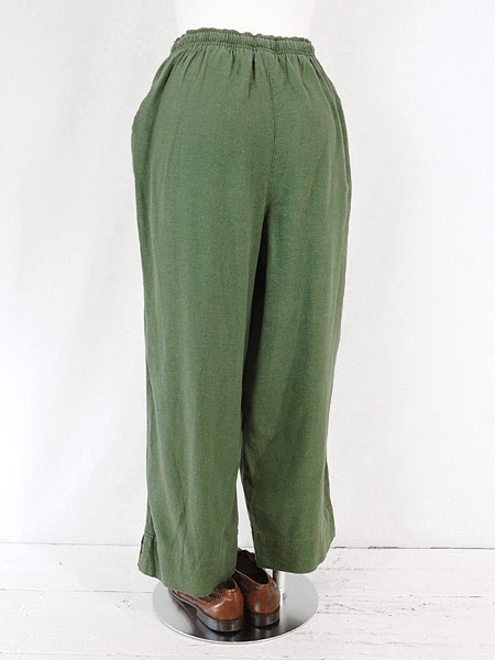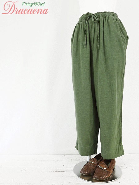 Ladies ブランド カラーカーキ メール便不可 コンディション★★★ 素材リネン・レーヨン 表記サイズS 実寸サイズ 着丈 85 cm ウエスト 68cm 〜 84cm (27インチ〜33インチ) レングス(股下) 22 インチ(56 cm) 股上 34 cm 太もも幅 31 cm 裾幅 22 cm スリット 6 cm ※ウエスト・ヒップ以外は平置き採寸