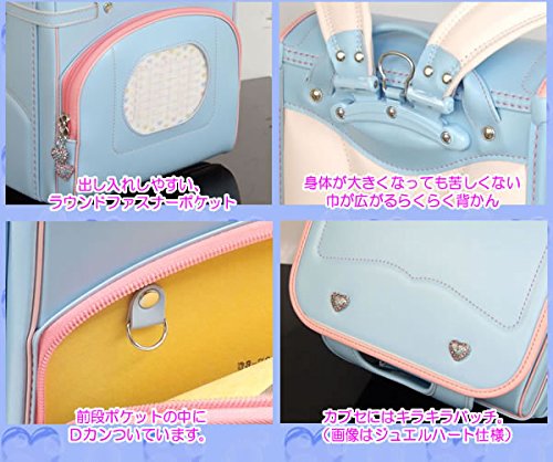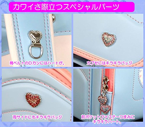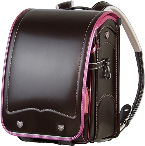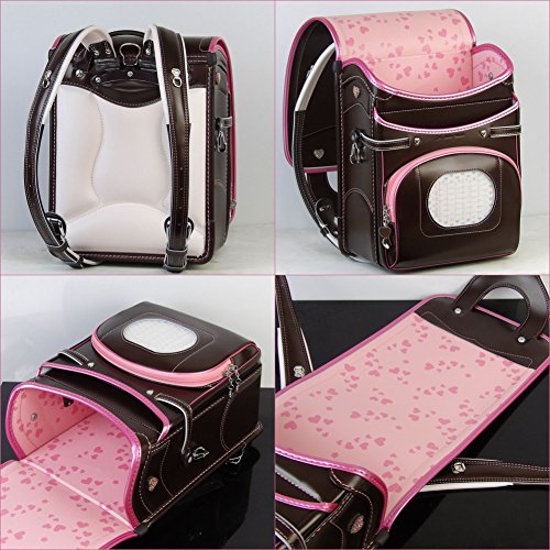 사뿐히 # 펄 콤비 란도셀 ≪ 펄 세피아 (본체)×펄 핑크(후치)≫ 8개의 jewel 하트 사양 와이드크기손잡이 핸들부 A4플랫 파일 수납크기