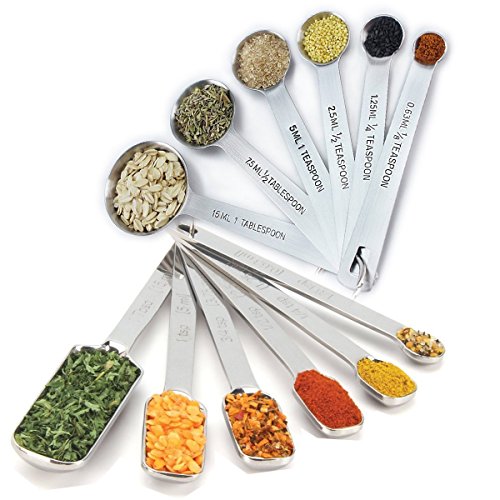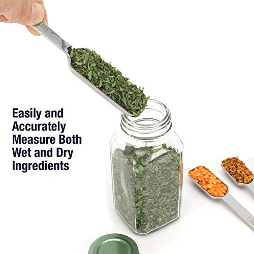 Stainless Steel Measuring Spoons by Yinat- Set of 12pcs with Bonus Leveler Narrow Accurate Measuring Spoon Design Fits