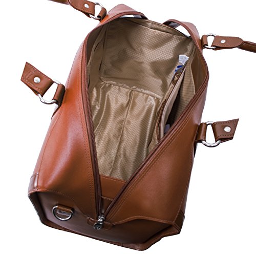 Product Description This travel duffel is crafted from highest quality top-grain cow hide leather. Sleek and professional look, a classic duffel that can go from the airport to the office. Interior compartment offers dual protection high-density foam section for a tablet. The bag has an adjustable detachable padded shoulder strap. Interior organizer section for media devices, cell phone, business cards, key holder and pens. 0