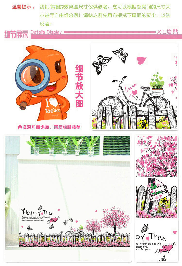 4、若不小心将墙贴贴错位置了,可以用小刀片将墙贴一角轻轻掀起撕下,重新粘贴即可,本产品正常情况下可重复使用,只要不撕坏;