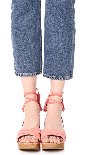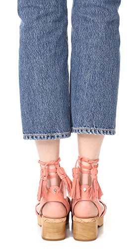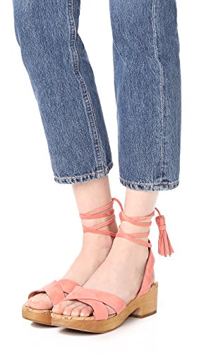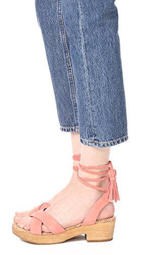 Product DescriptionClog sandal with wooden sole and ankle wrap with tassle details at ends0