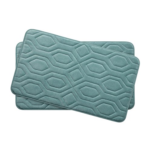 Bounce Comfort Extra Thick Memory Foam Bath Mat Set - Turtle Shell Premium Plush 2 Piece Set with BounceComfort Technology, 17 x 24 in. Marine Blue