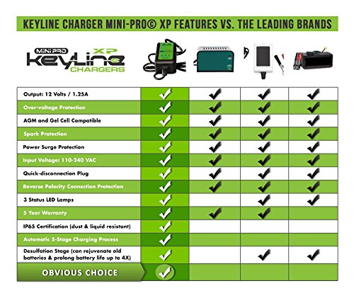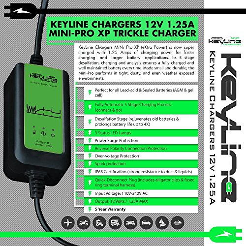 KeyLine Chargers KC-125-MPXP 12V 1.25 Amp Automatic Mini Pro-XP Car Battery Charger (5 Stage Maintainer, Conditioner, Desulfator and Tender)