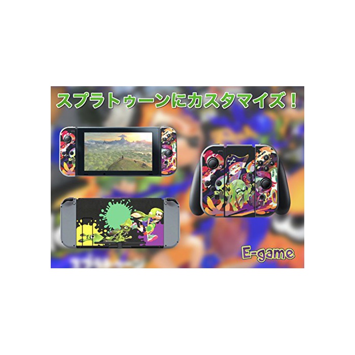 【E-game】 고품질 Nintendo Switch 스킨 씰 보호 커버 (본체 도크 Joy-Con 그립 4점 세트) 액정 보호 필름 & 오리지날 크로스 부착 「스푸라톤