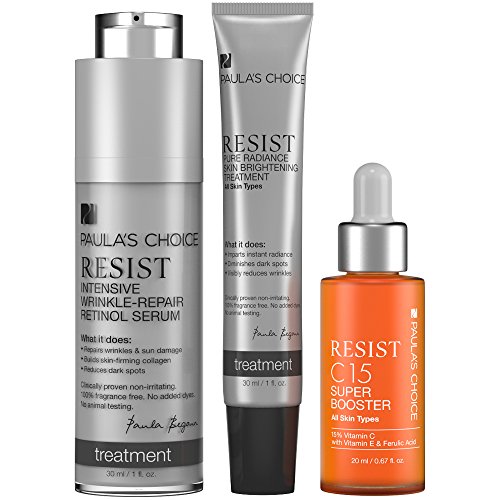 -. Feature : Products work together to firm skin, repair wrinkles, even out skin tone / 3 products: Resist Pure Radiance, Resist C15 Super Booster, Resist Retinol Serum / For all skin types / Anti-aging, brown spots, wrinkles