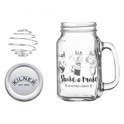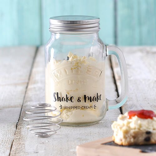 Add your very own cream to the Kilner handled jar with whisk ball, cover with lid and shake for instant results; screw lid seals in freshness so that any extra whipped cream can be enjoyed later