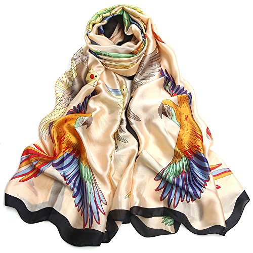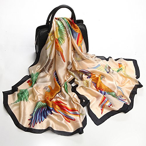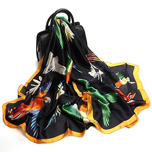 Sleep Koala Women's Soft Silk Scarf Large Satin Shawl Parrot Pattern Wraps