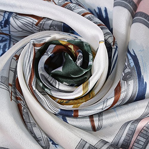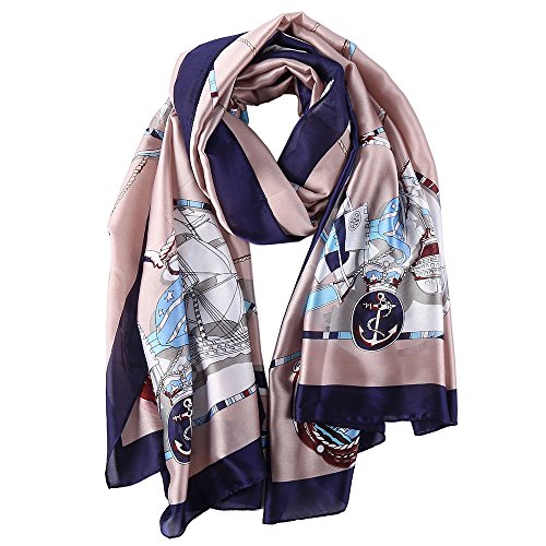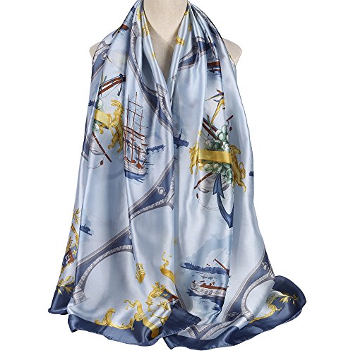 Sleep Koala Women's Soft Large Silk Scarf Sunscreen Shawl Beach Wraps Blue Boat