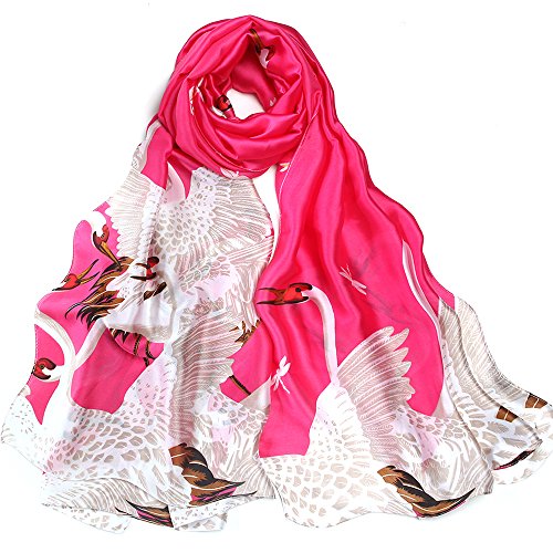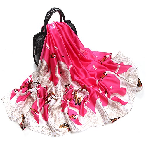 Sleep Koala Women's Soft Silk Scarf Luxury Satin Swan Painted Shawl Wraps Rosered