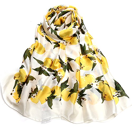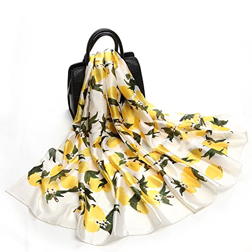 Sleep Koala Women's Soft Silk Scarf Large Satin Shawl Lemon Pattern Wraps