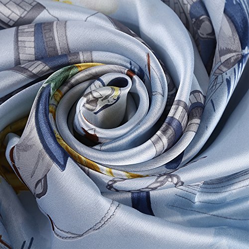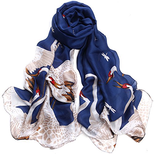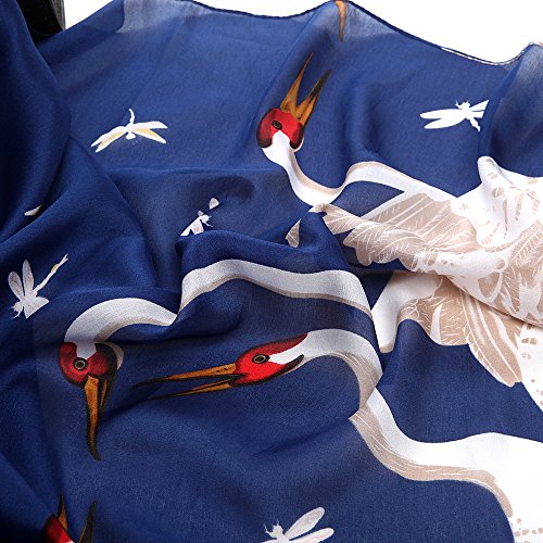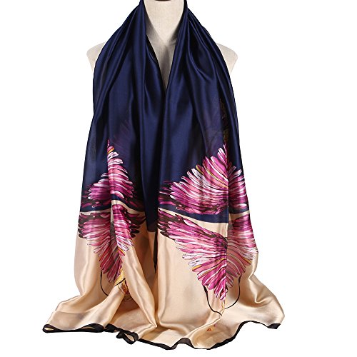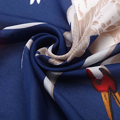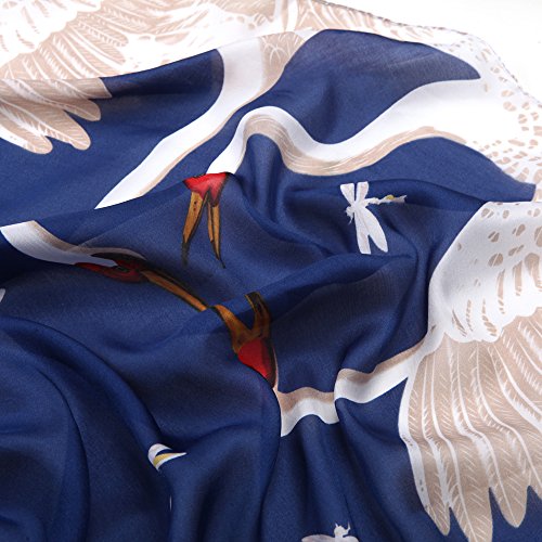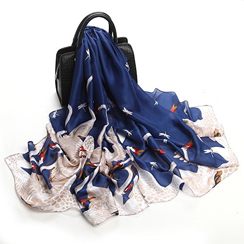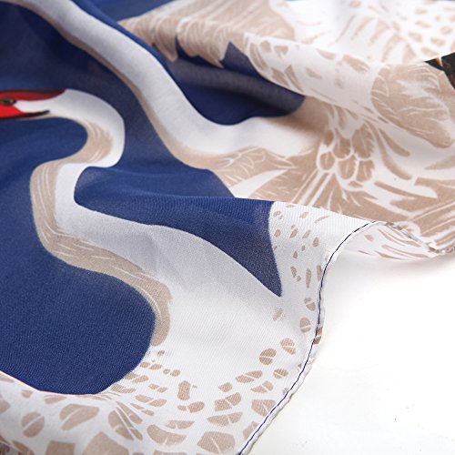 Sleep Koala Women's Soft Silk Scarf Luxury Satin Swan Painted Shawl Wraps Blue
