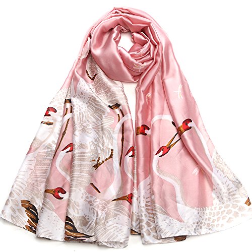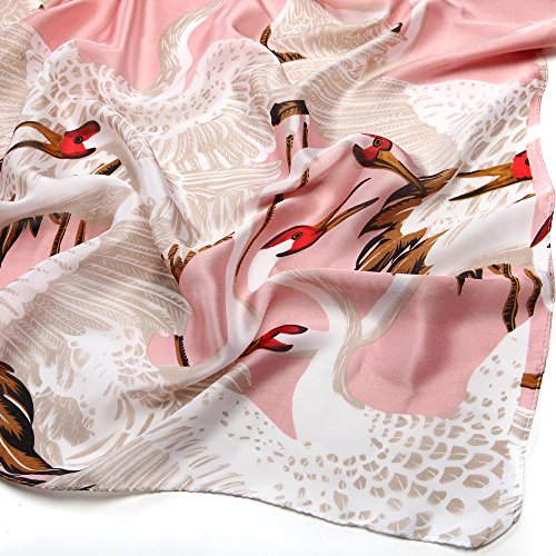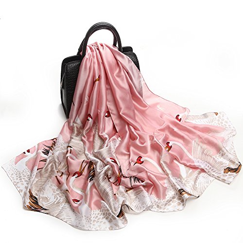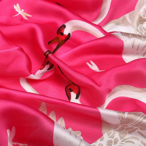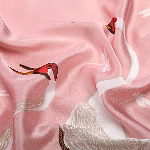 Sleep Koala Women's Soft Silk Scarf Luxury Satin Swan Painted Shawl Wraps Pink