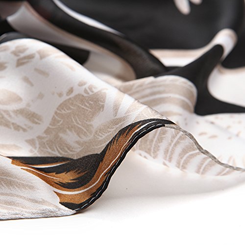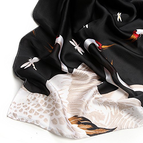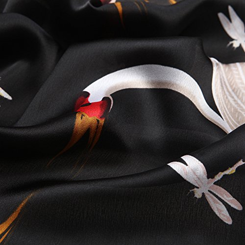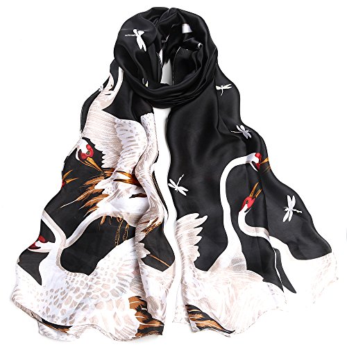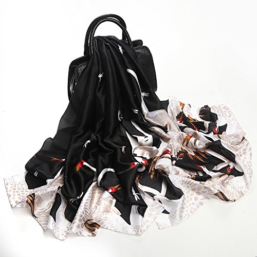 Sleep Koala Women's Soft Silk Scarf Luxury Satin Swan Painted Shawl Wraps Black