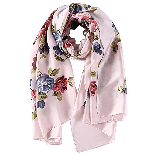Sleep Koala Women's Soft Silk Scarf Large Shawl Wraps Pink Flower