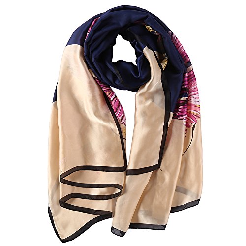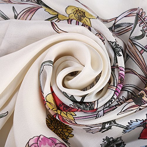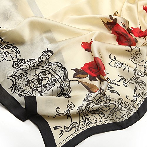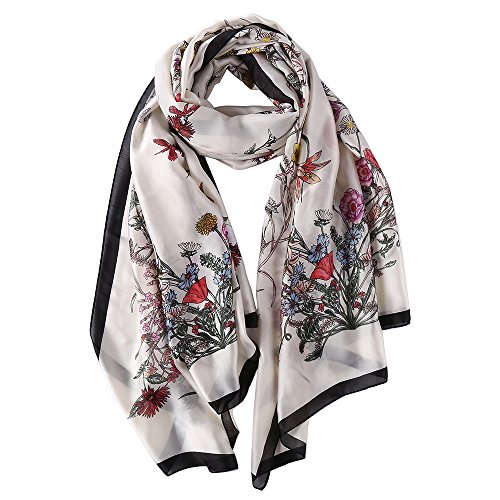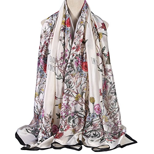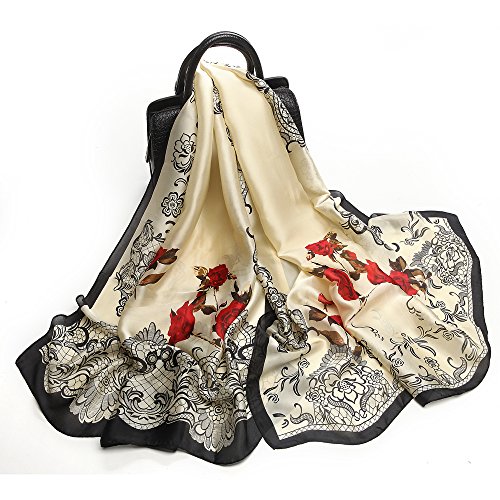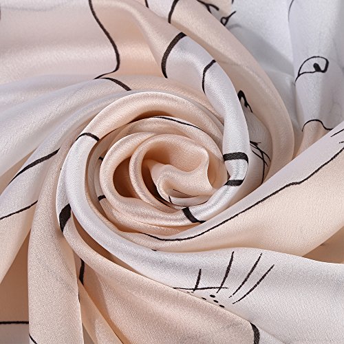 Sleep Koala Women's Soft Silk Scarf Large Shawl Wraps Beige Flowers
