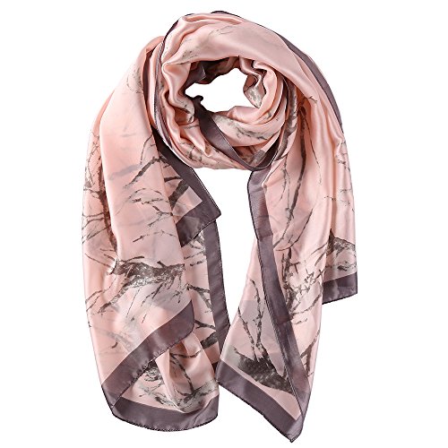 Sleep Koala Women's Soft Large Silk Scarf Sunscreen Shawl Beach Wraps Pink Tree
