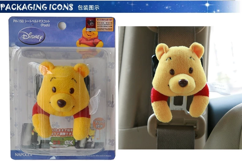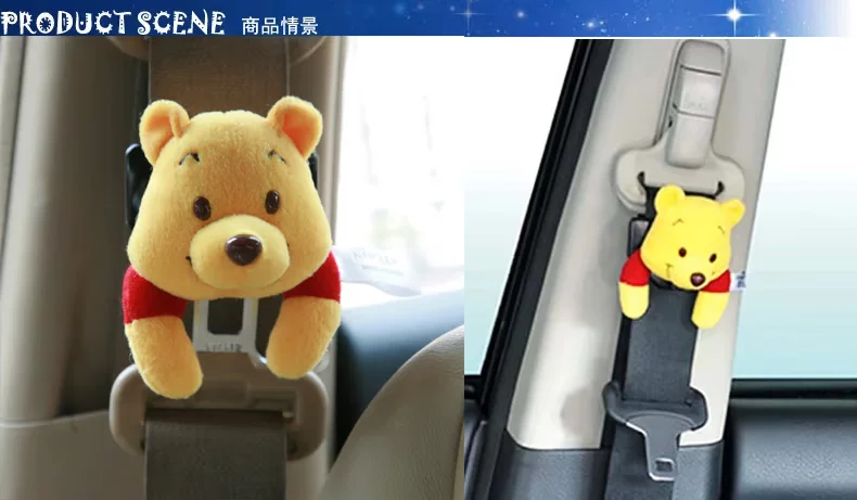 Lovely shape, beautiful shiny yellow, super soft velvet fabric, feel good. Pooh modeling, there are clips for fixing the seat belt, the baby in the car, cute car, people are more cute!