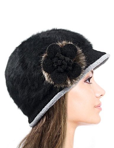 -. Binding : Apparel -. Brand : Dahlia -. ClothingSize : One Size -. Department : womens -. Feature : Button Newsboy: Circumference: 22 inches, Flat Height: 7 inches; Available in 2 Colors: Black and Cream / Flower Bucket: Circumference: 22 inches, Flat Height: 6.5 inches; Available in 4 Colors: Light Gray, Burgundy, Black and Cream / Super soft fuzzy angora blend hat with stylish accent / A unique hat for ladies who loves fashionable stylish hat / Risk-Free Shopping: quality assurance in addition to a no-question-asked return policy -. ProductGroup : Apparel -. ProductTypeName : HAT -. Size : One Size -. Title : Dahlia Women's Angora Dual Layer Bucket Newsboy Cap Hat - Button or Flower
