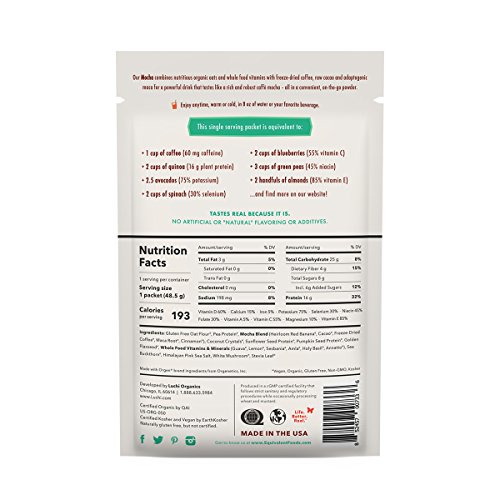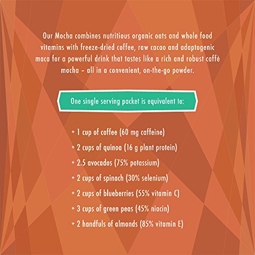Our Mocha combines nutritious organic oats and whole food vitamins with freeze-dried coffee, raw cacao and adapt genic mace for a powerful drink that tastes like a rich and robust cafe mocha - all in a convenient, on-the-go powder.