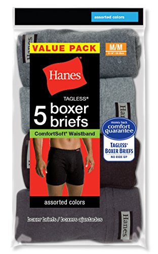 -. Binding : Apparel -. Brand : Hanes -. Color : Multi -. Department : mens -. Feature : Pack of boxer briefs with each featuring a functional fly and covered elastic waistband with logo patch / Tagless designs for comfort / Leg bands to keep boxer briefs in place -. Label : Hanes Red Label Men's Underwear - Tops -. Manufacturer : Hanes Red Label Men's Underwear - Tops -. Model : 7460Z5 -. MPN : 7460Z5 -. NumberOfItems : 5 -. PackageQuantity : 1 -. PartNumber : 7460Z5 -. ProductGroup : Apparel -. ProductTypeName : UNDERWEAR -. Publisher : Hanes Red Label Men's Underwear - Tops -. Studio : Hanes Red Label Men's Underwear - Tops -. Title : Hanes Men's 5-Pack Comfort Soft Boxer Briefs