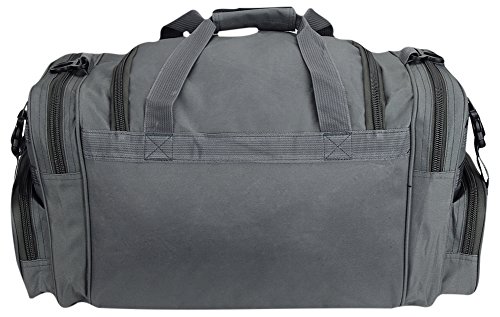 Storage is a big advantage with this tactical duffle. It has 2 adjustable buckle snap flap pockets (6L x 3.5W), 2 zippered pockets (7L x 4.5W), 1 zippered middle pocket (7.5L x 3.75W).