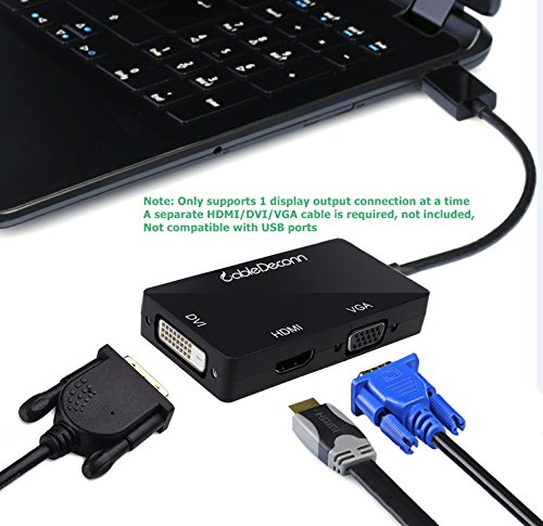Connects a DisplayPort DP equipped laptop or desktop to an HDTV, monitor, or projector with HDMI/DVI/VGA; Only supports 1 display output at a time,An HDMI/DVI/VGA cable (sold separately) is required,Note: Not compatible with USB ports