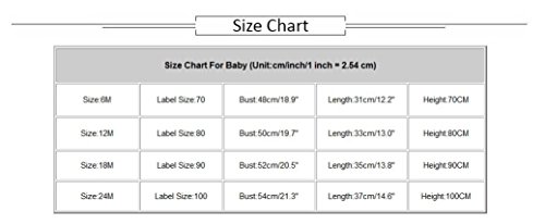 Product Description??Size:6M----Label Size:70----Bust:48cm/18.9"----Length:31cm/12.2"----Height:70CM ??Size:12M----Label Size:80----Bust:50cm/19.7"----Length:33cm/13.0"----Height:80CM ??Size:18M----Label Size:90----Bust:52cm/20.5"----Length:35cm/13.8"----Height:90CM ??Size:24M----Label Size:100----Bust:54cm/21.3"----Length:37cm/14.6"----Height:100CM0