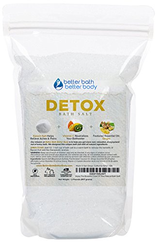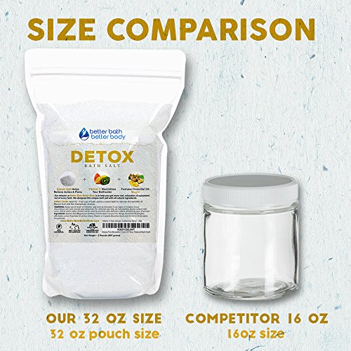 Detox Bath Salt 32oz (2-Lbs) - Epsom Salt Bath Soak With Ginger & Lemon Essential Oil Plus Vitamin C - All Natural No Perfumes No Dyes - Detoxify & Revitalize Your Body & Mind Naturally