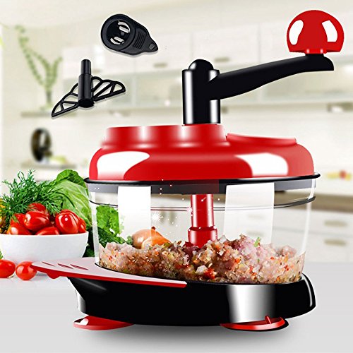 HONGJING Manual Food Processor Hand Powered Chopper Multi Vegetable Chopper Meat Grinder Food Mixer Blender Manual Food Chopper Hand Held Dicer/Mincer/Spiral Slicer