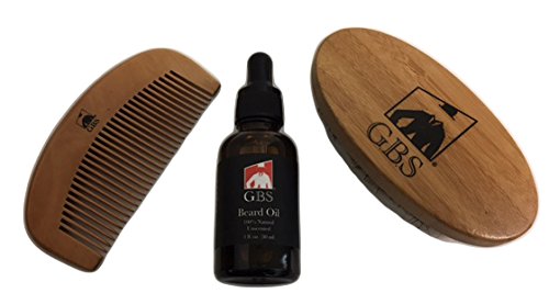 GBS Beard Oil with Premium Oval Wood Beard Brush with Boar Bristles, and Bamboo All Fine Beard Comb