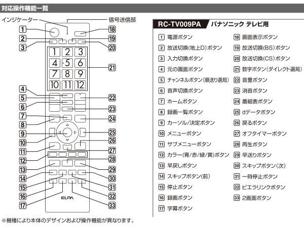 | リモコンの増設、取り替えに便利なテレビリモコン。 |