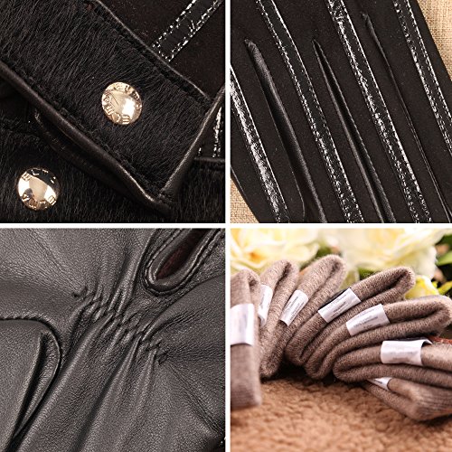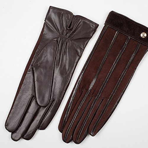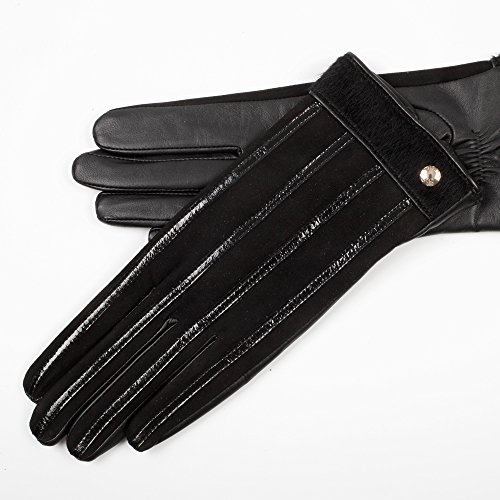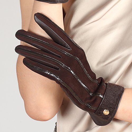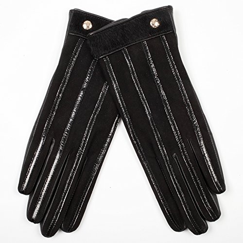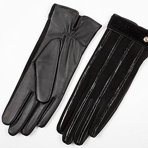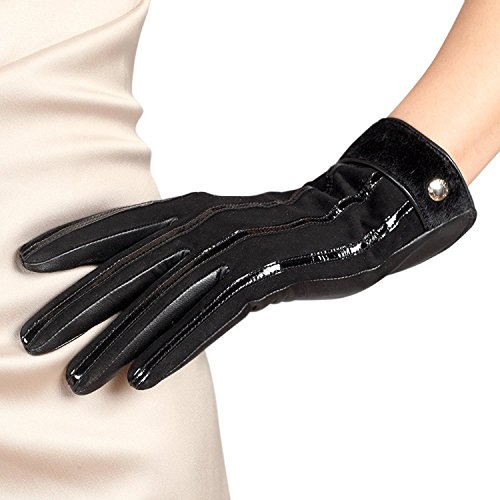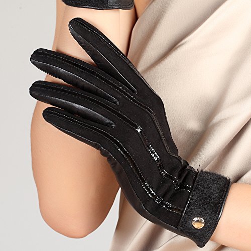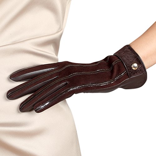 Elma Womens Touchscreen Texting Driving Dress Leather Winter Gloves, Suede Leather Back and Pat...
