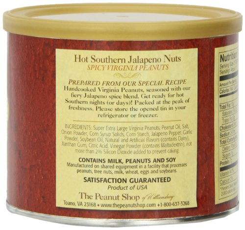 The Peanut Shop of Williamsburg Hot Southern Jalapeno Nuts, 10.5-Ounce Tins (Pack of 3)