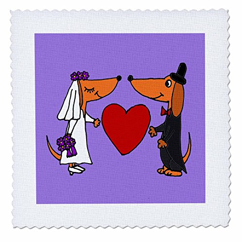 3dRose Funny Dachshund Dogs Bride & Groom Wedding Art - Quilt Square, 6 by 6-Inch (qs_200516_2)