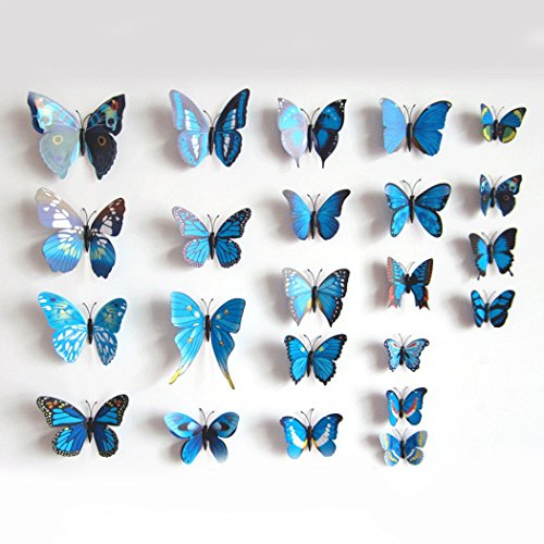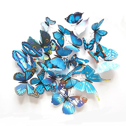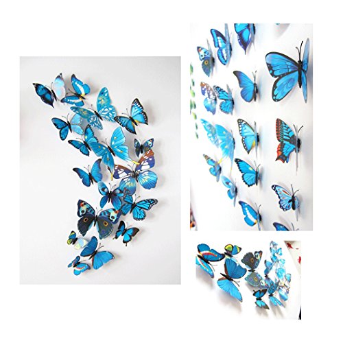 12 Pcs Colorful Butterfly 3D Wall Stickers DIY Art Decor Crafts Room Decoration (blue)