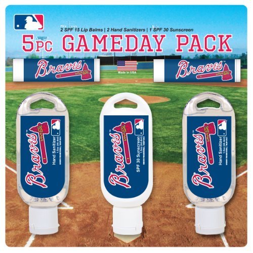 -. Title : MLB Atlanta Braves Game Day Pack Includes 2 Lip Balm, 1 Hand Lotion, 1 Hand Sanitizer and 1 SPF 30 Sunscreen (5-Piece), 8 x 8 x 1.5-Inch, White