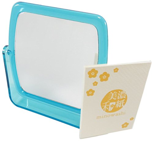THE SPECIFICS: Bundle of 2 items include: 1 transparent teal rimmed mirror (5.5" x 5"); and 100 sheets of oil blotting paper (3.8" x 2.8"). This set is a must-have in your bathroom, dressing room, or to take on your travels. The items are manufactured by Daiso Japan.