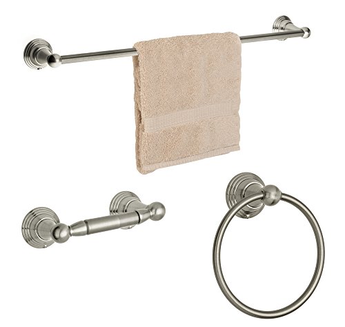 Dynasty Hardware 2200-SN-3PC Muirfield Series Bathroom Hardware Set, Satin Nickel, 3-Piece Set, With 24" Towel Bar