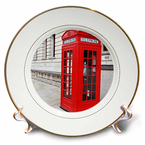 3dRose cp_56177_1 London's Famous Red Phone Booths Porcelain Plate, 8"